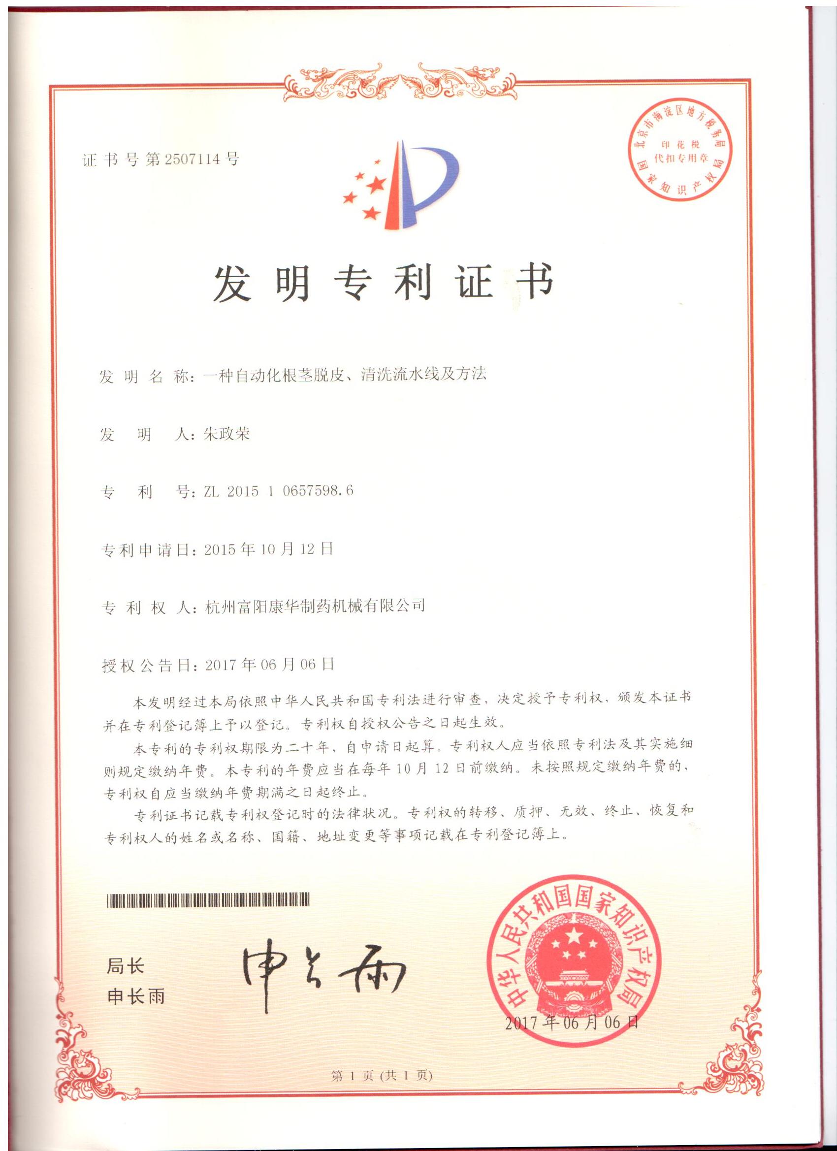 • 喜報!祝賀我司又獲得一項國家發明專利授權...