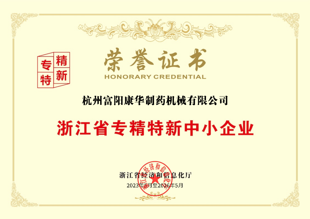 • 浙江省專精特新中小企業 榮譽證書